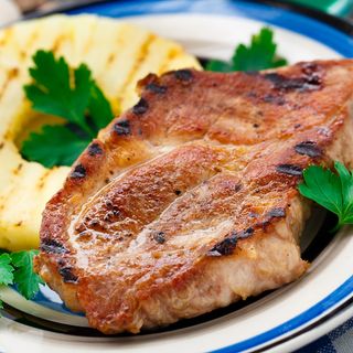 Cut a pocket into each chop and insert 1/2 slice of pineapple.
