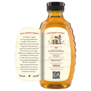 Peel away back label reveals honey traceability info
